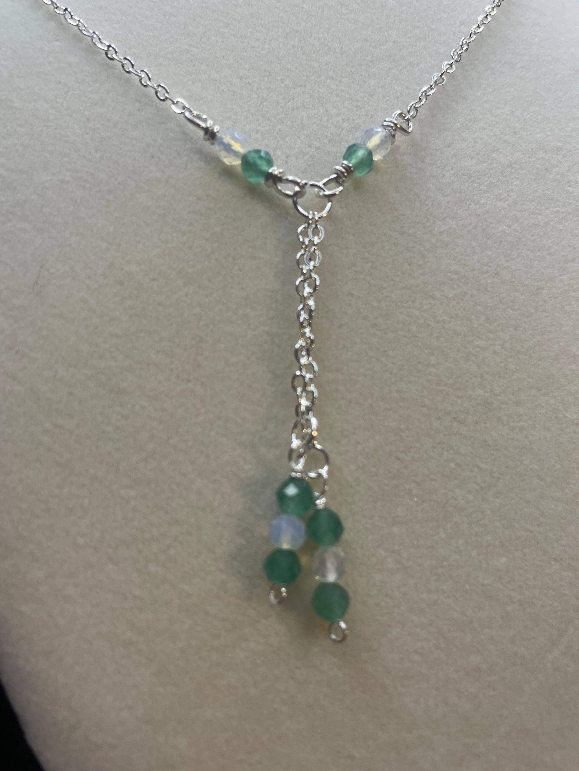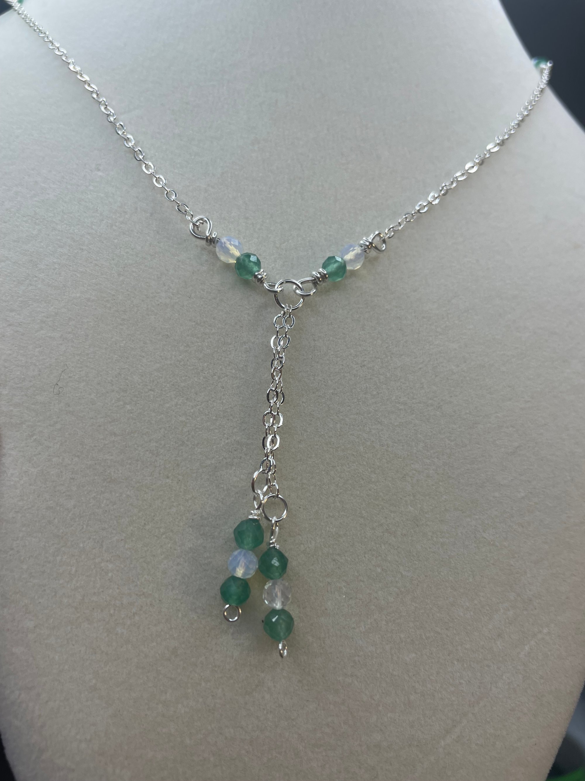 Green aventurine with opal gemstone necklace