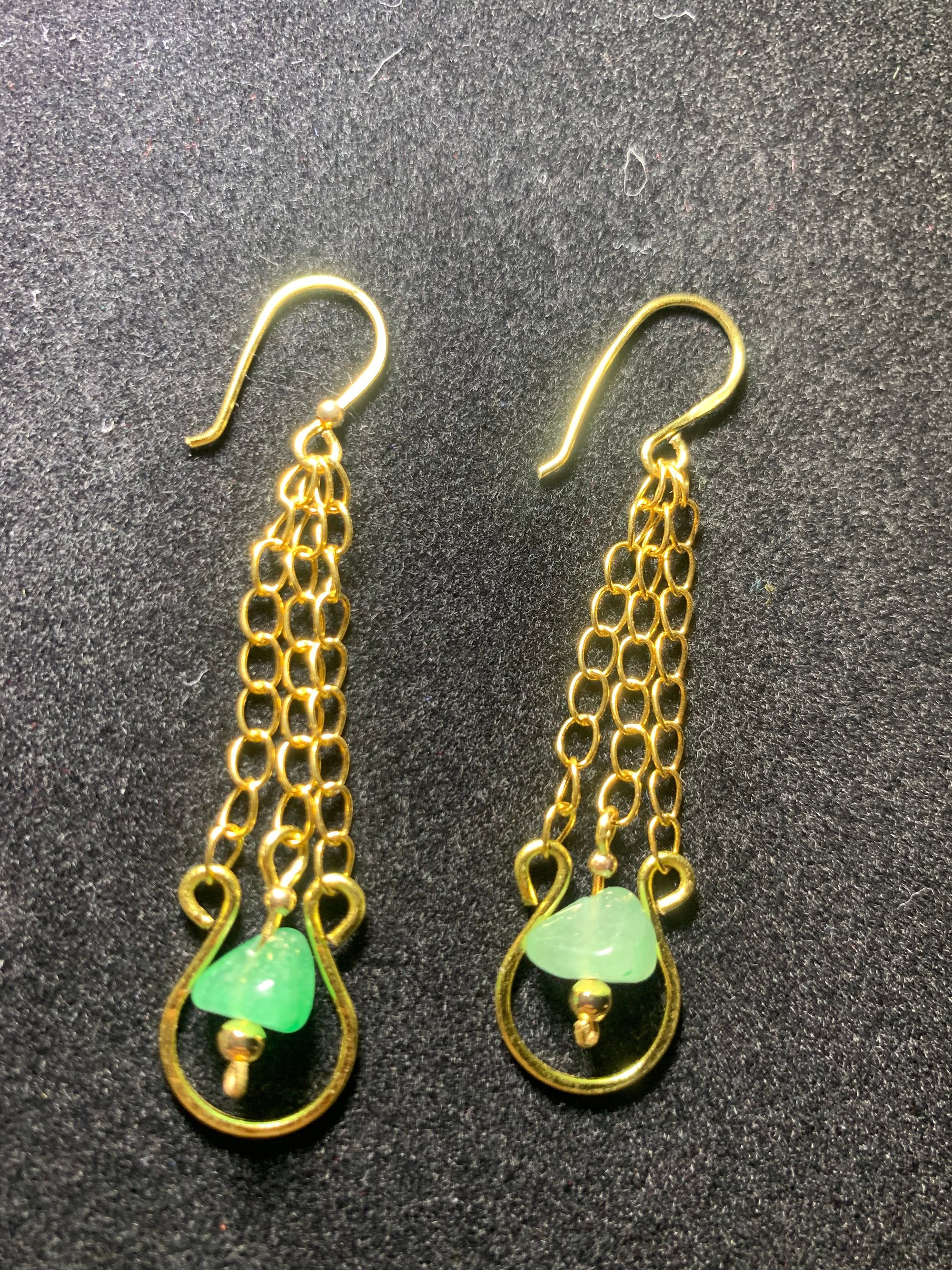 this earring are made of natural stone (green aventurine) with 18k gold plated chain and brass wire.